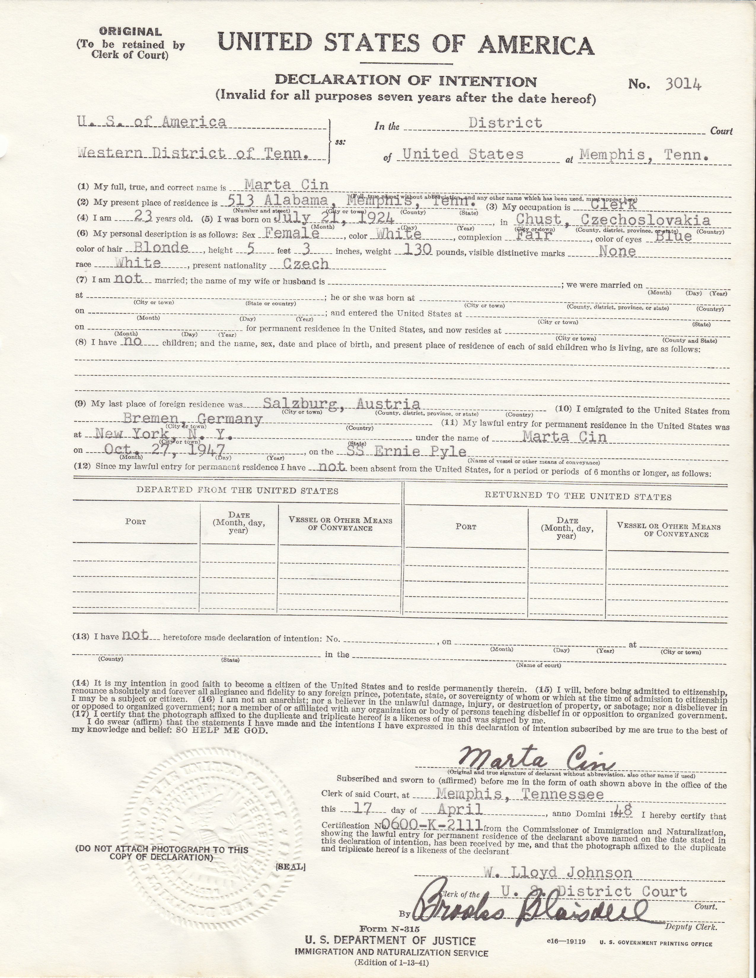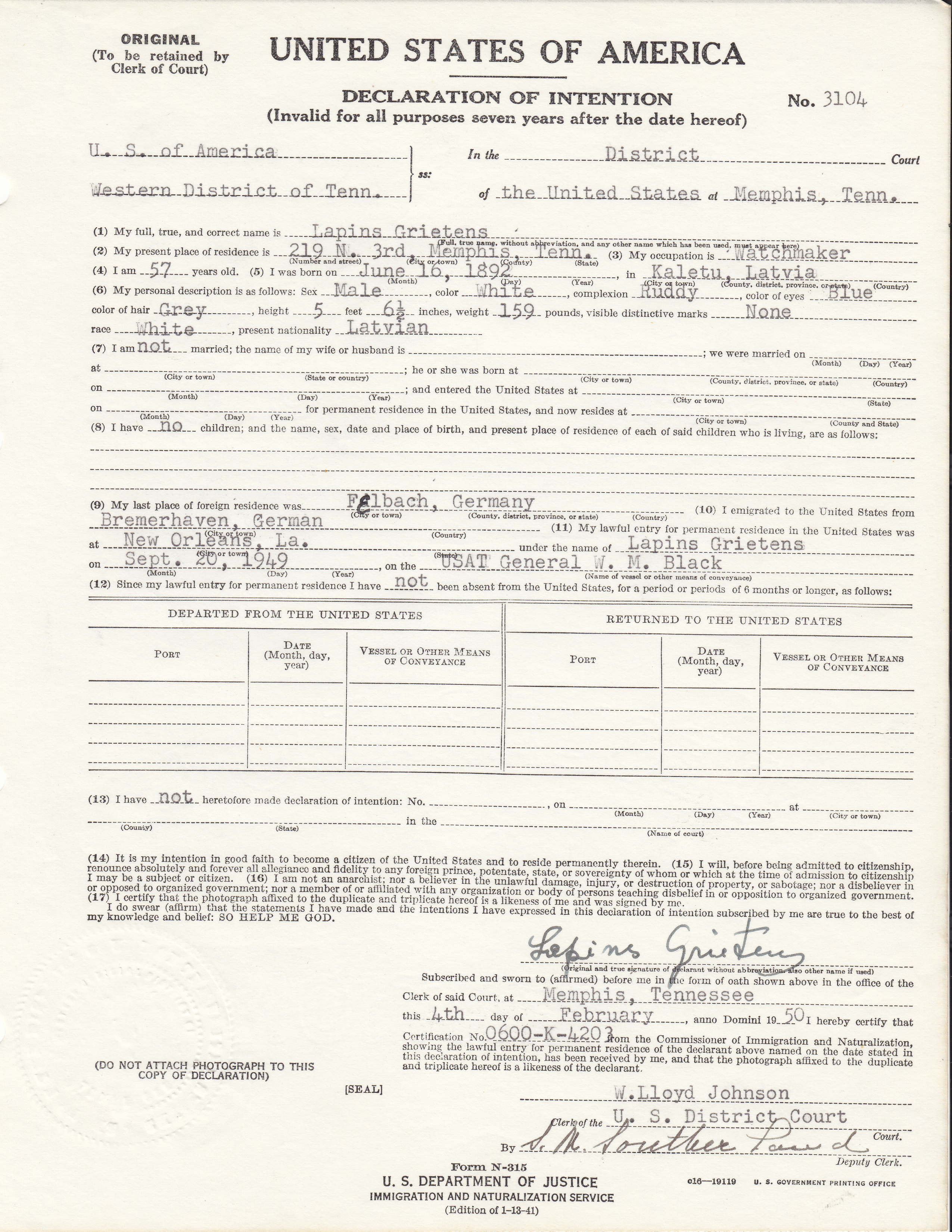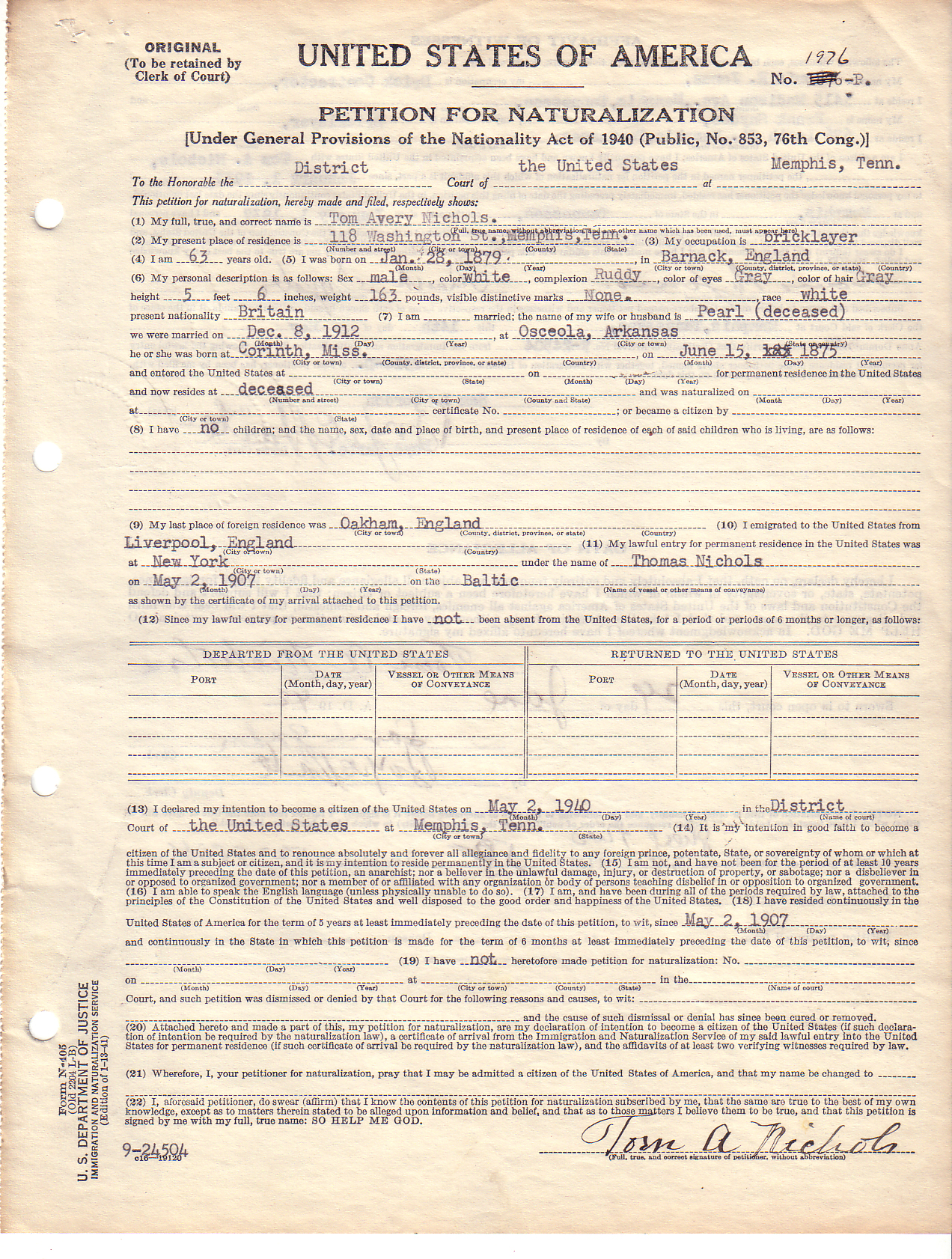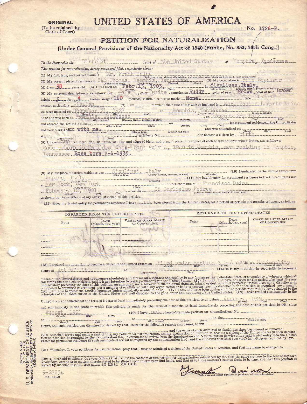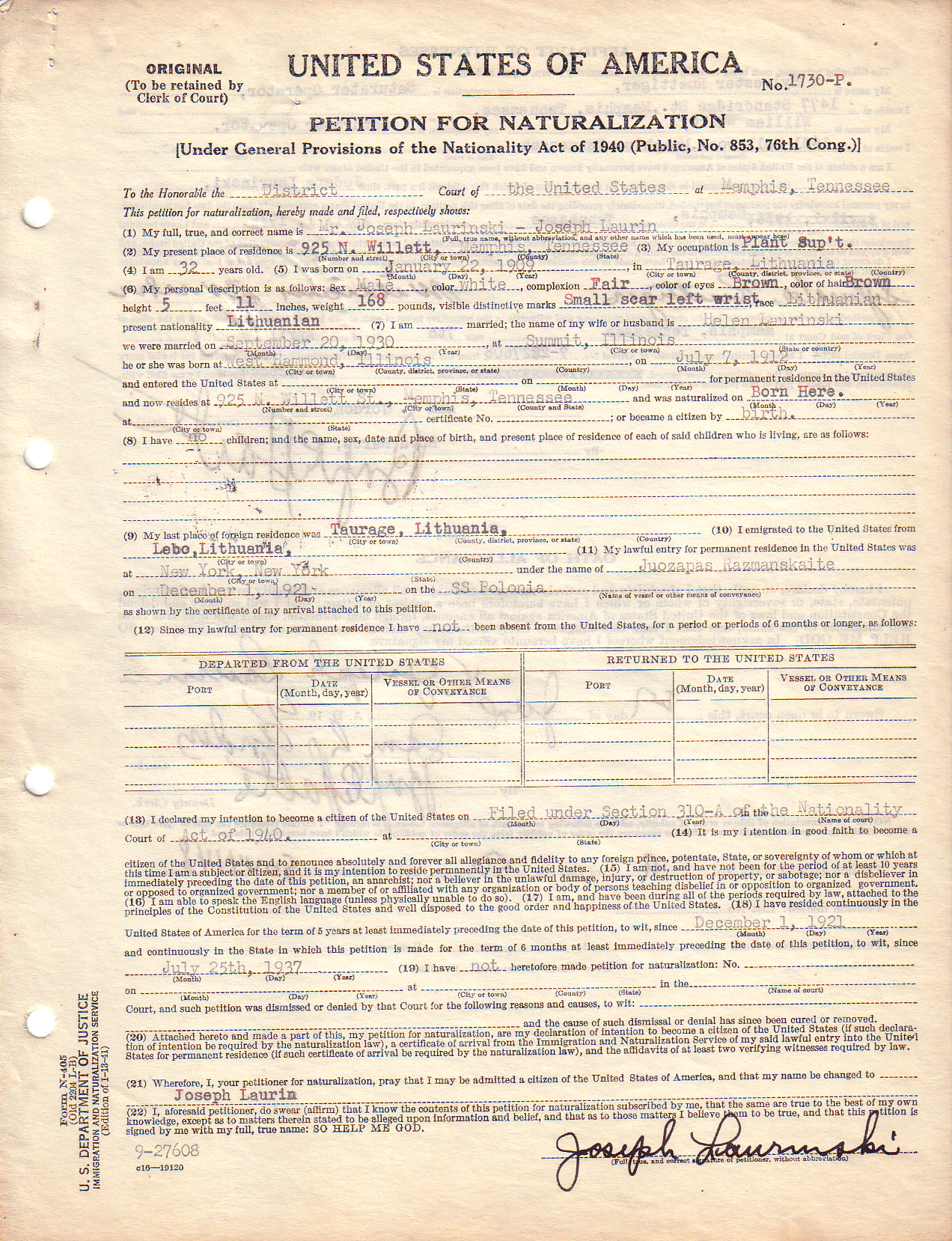 | Naturalization Records | |||||||