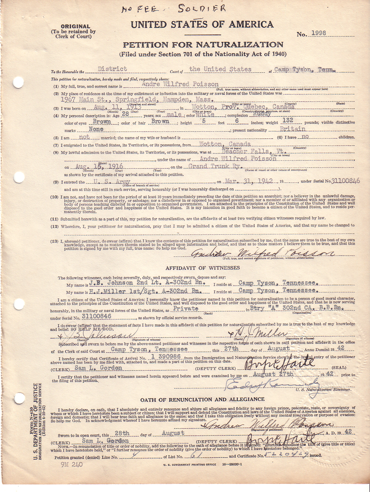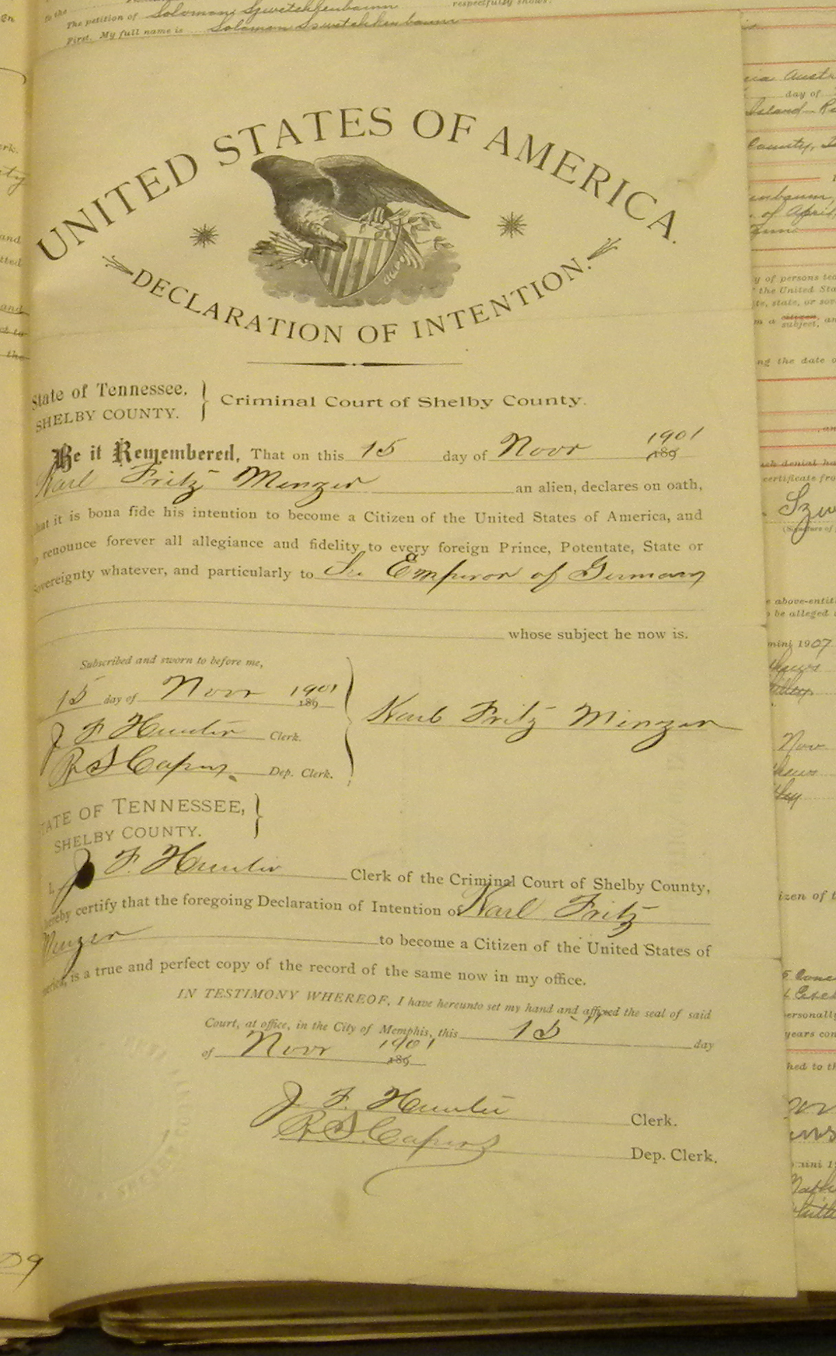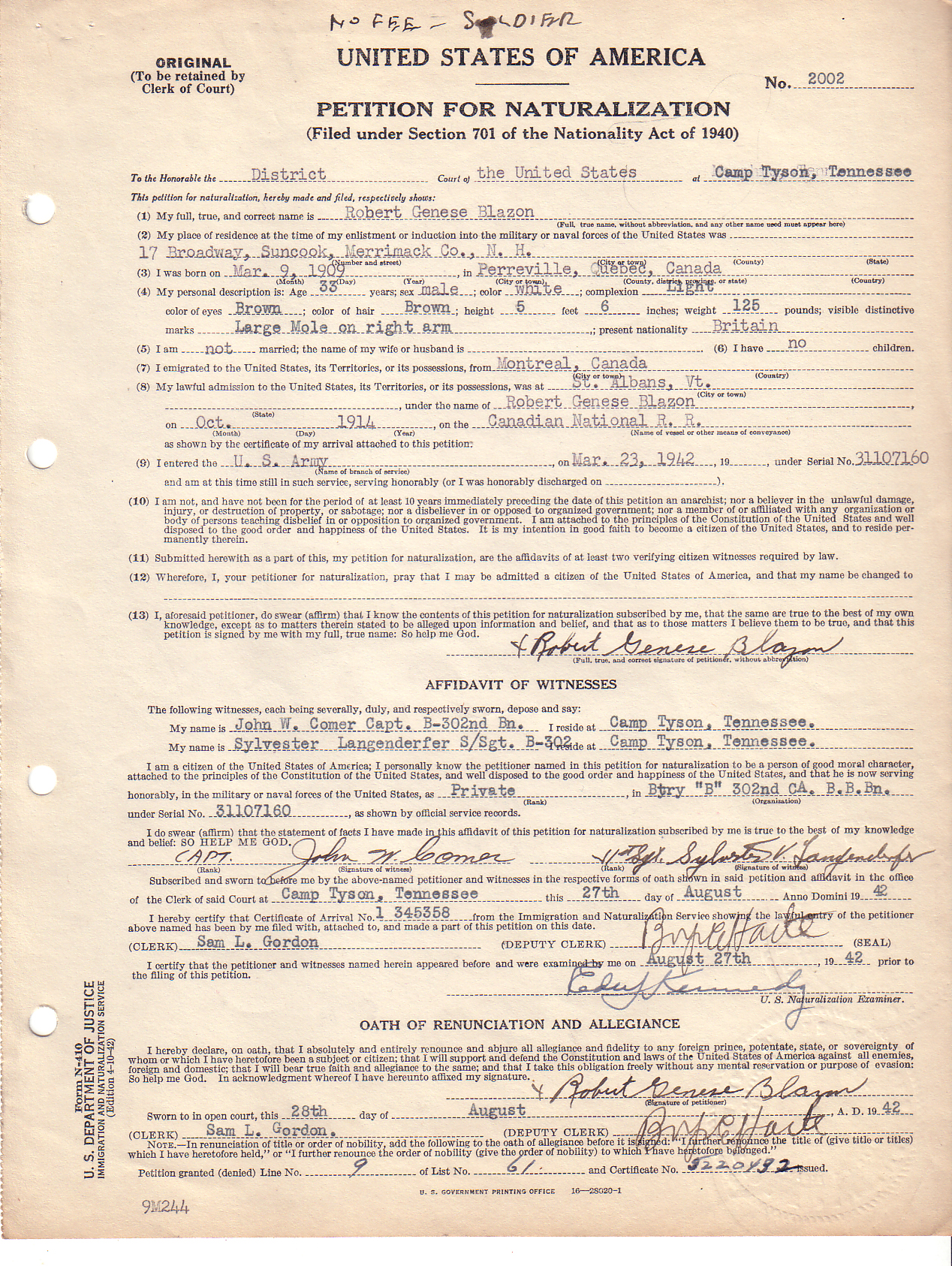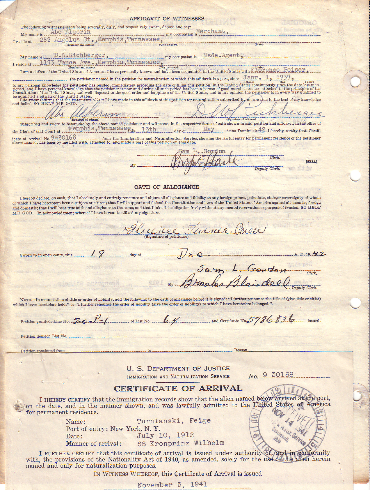 Note: You can access a national database for these types of records at: Online Searchable Naturalization Indexes and Records.