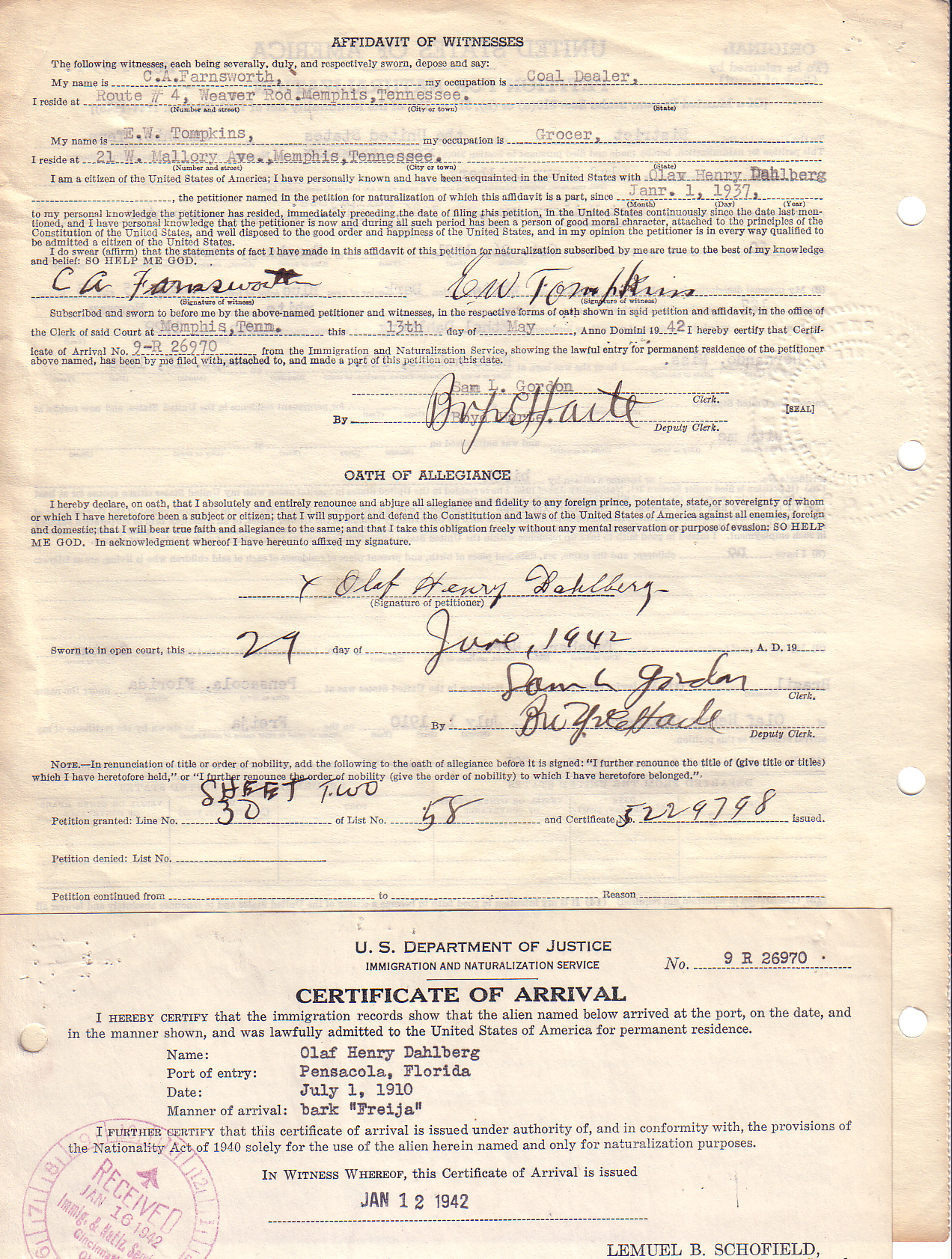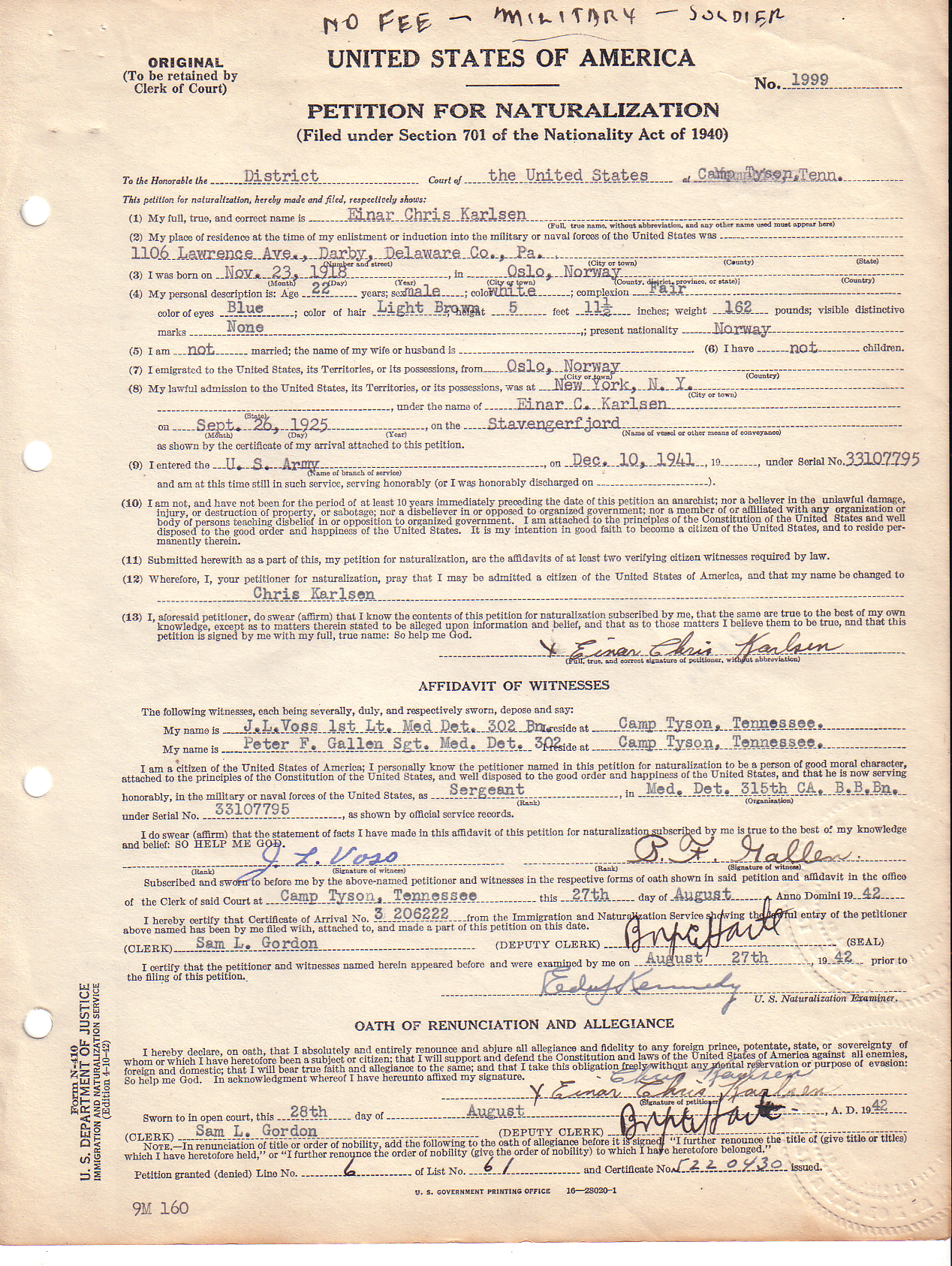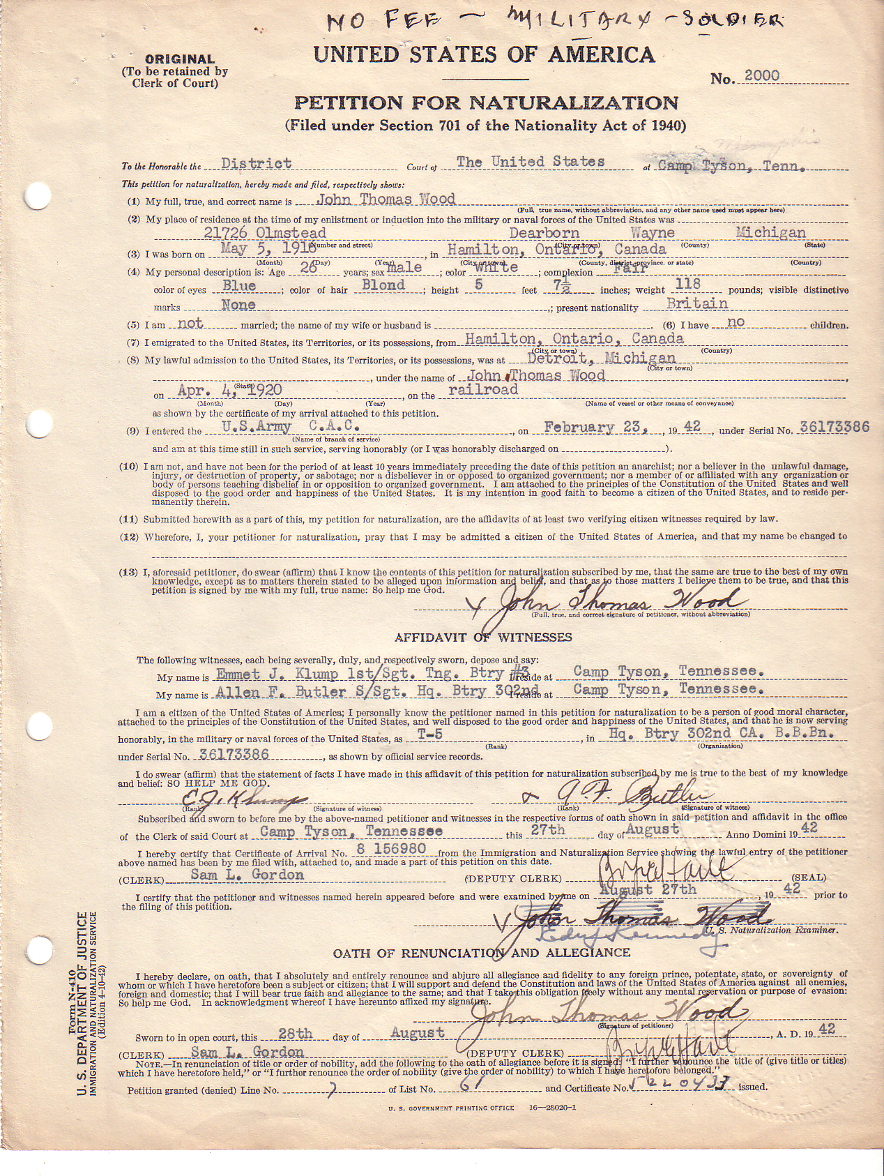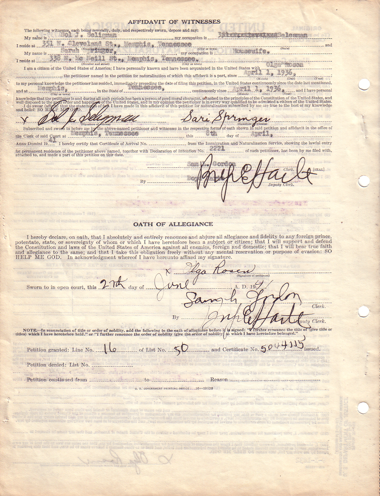 Note: You can access a national database for these types of records at: Online Searchable Naturalization Indexes and Records.