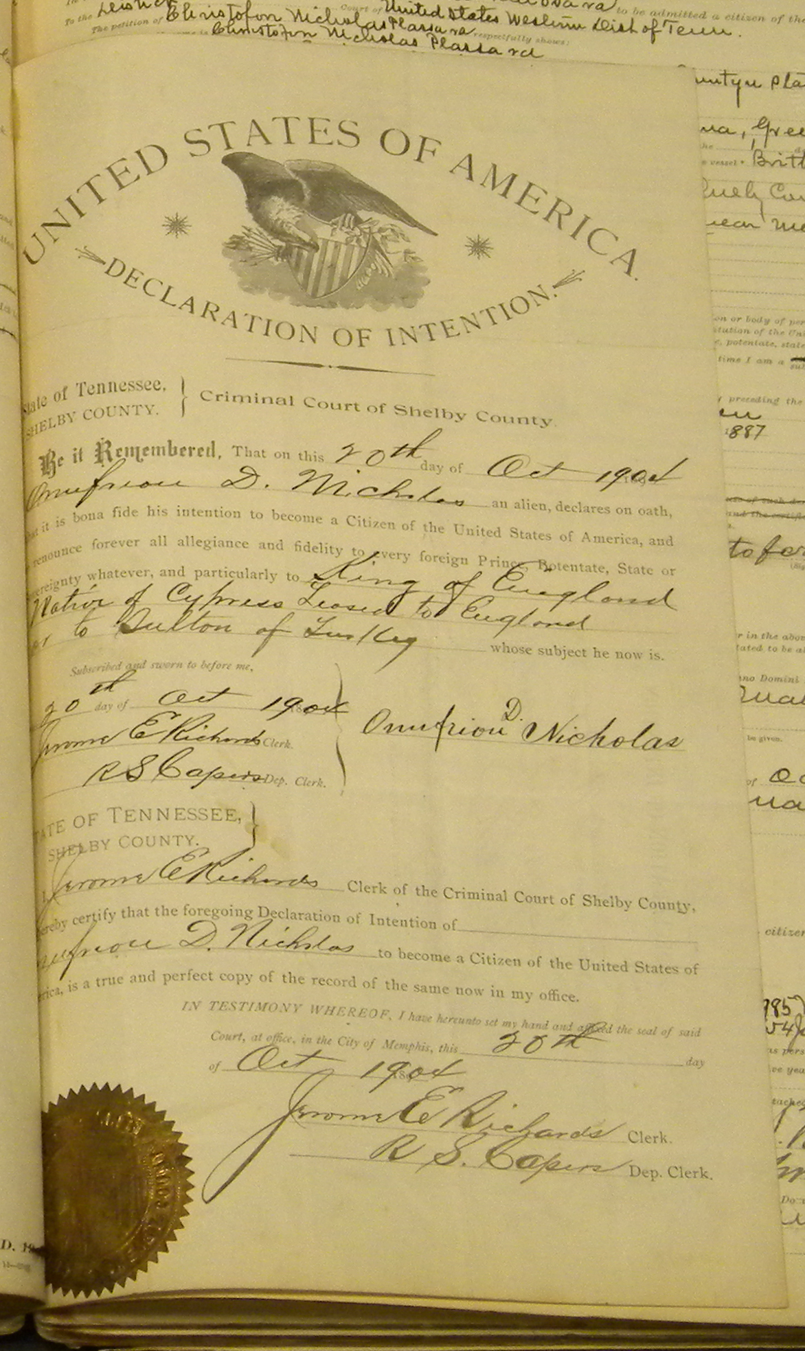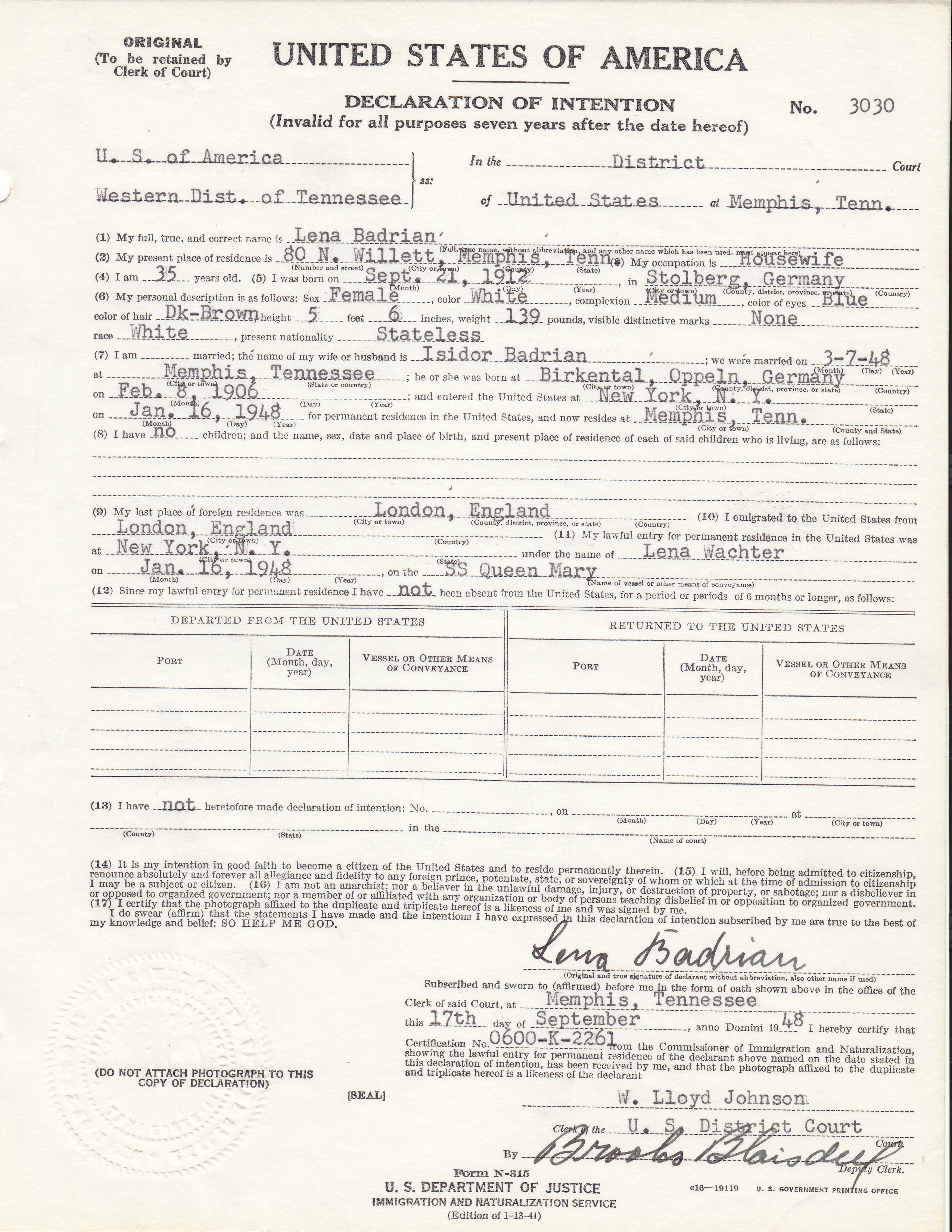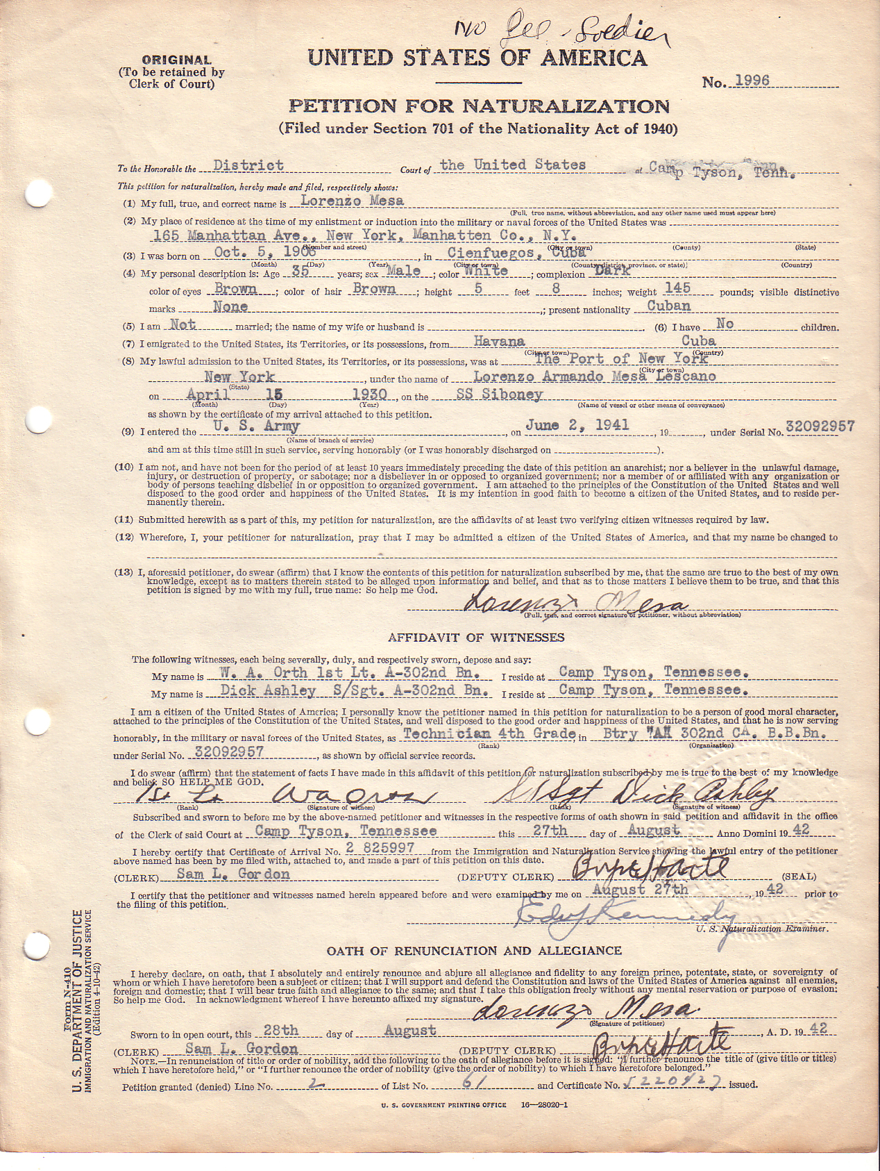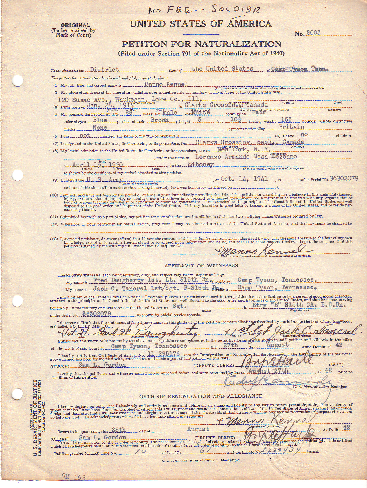 Note: You can access a national database for these types of records at: Online Searchable Naturalization Indexes and Records.