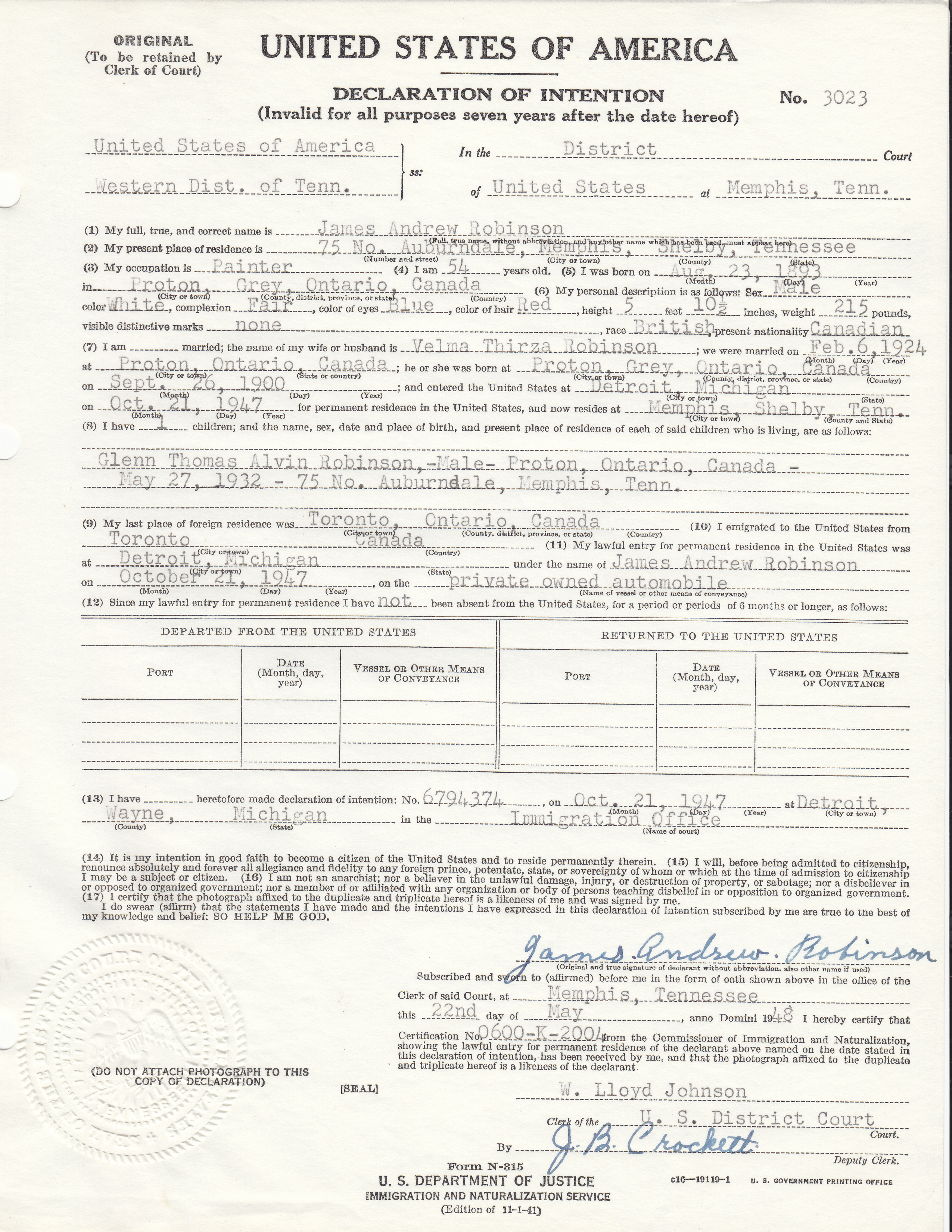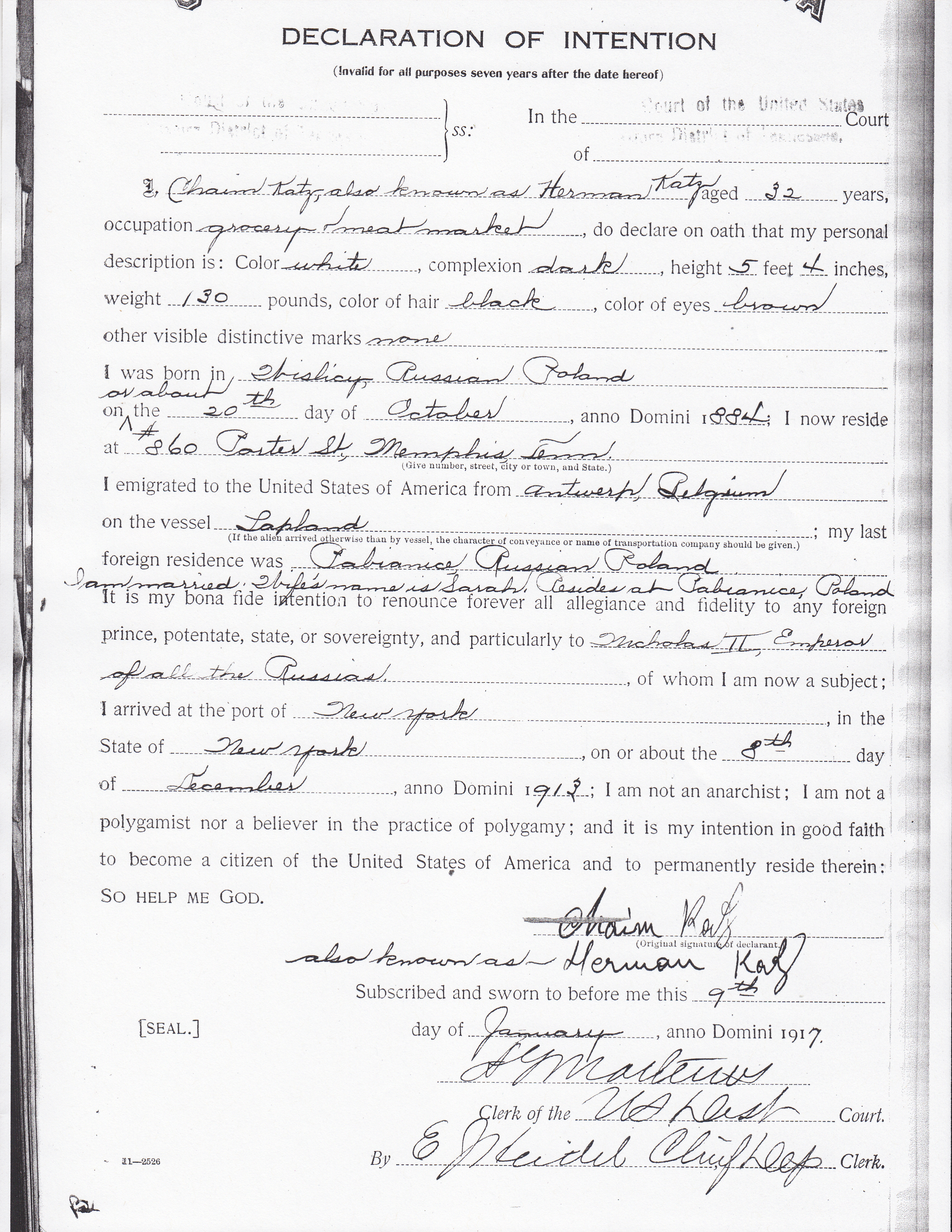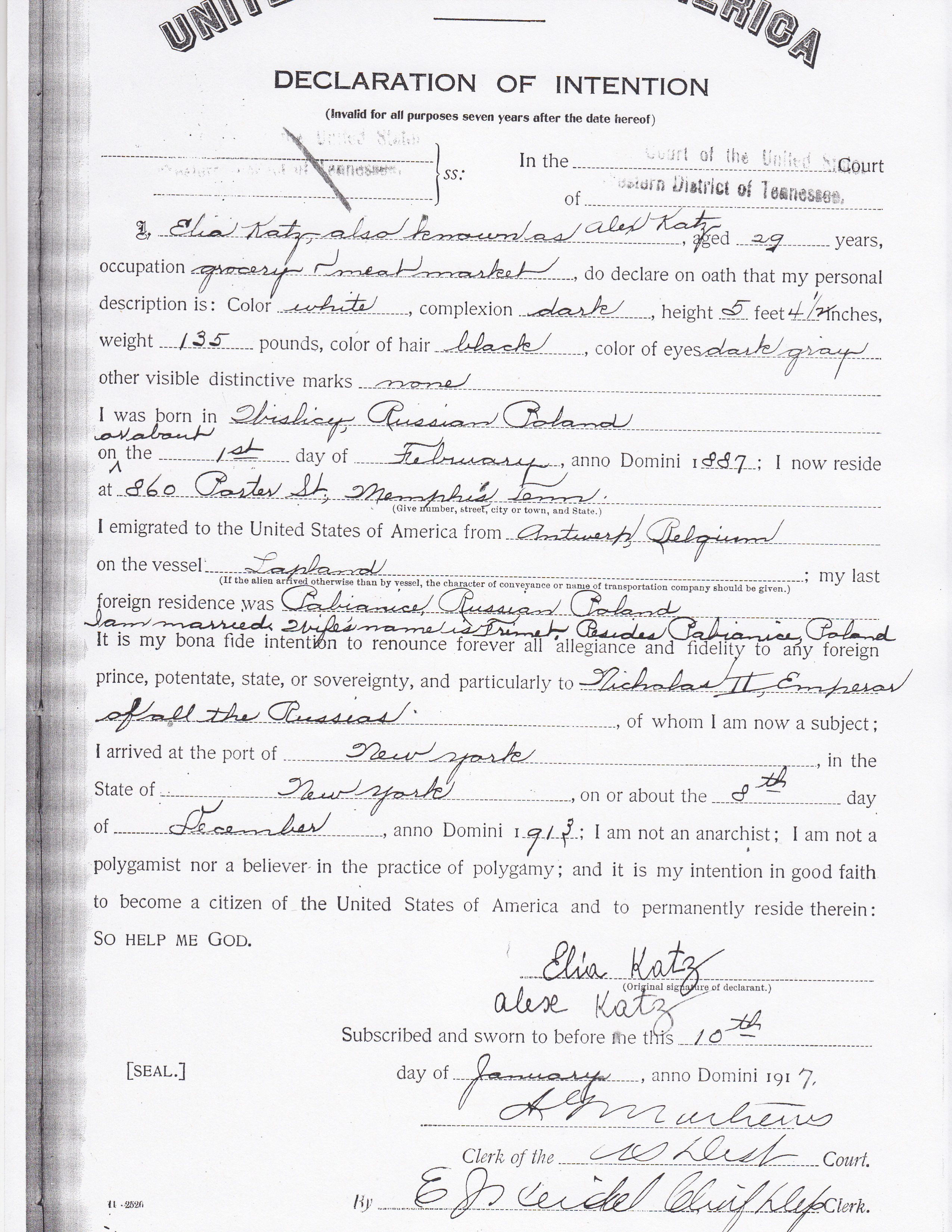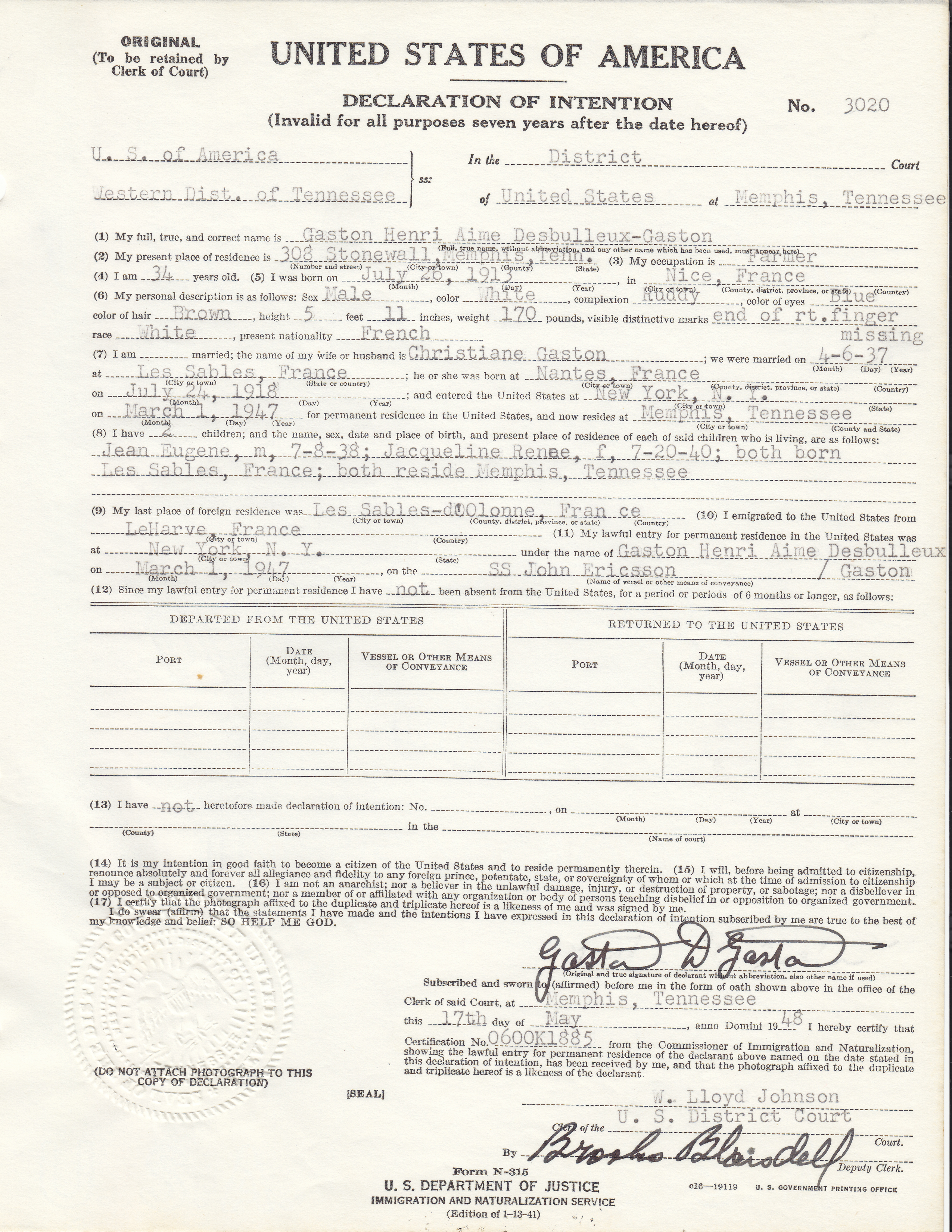 Sample Declaration of Intention