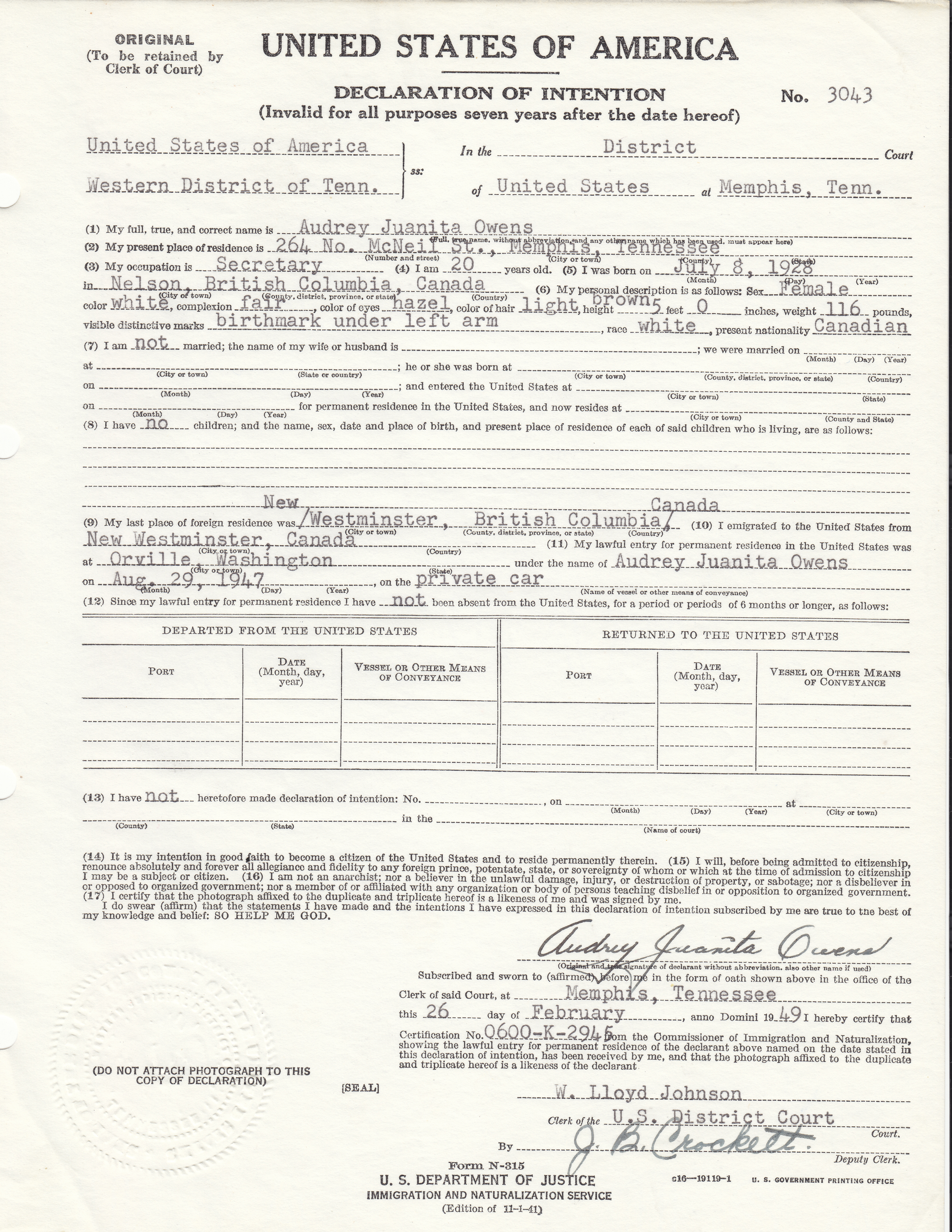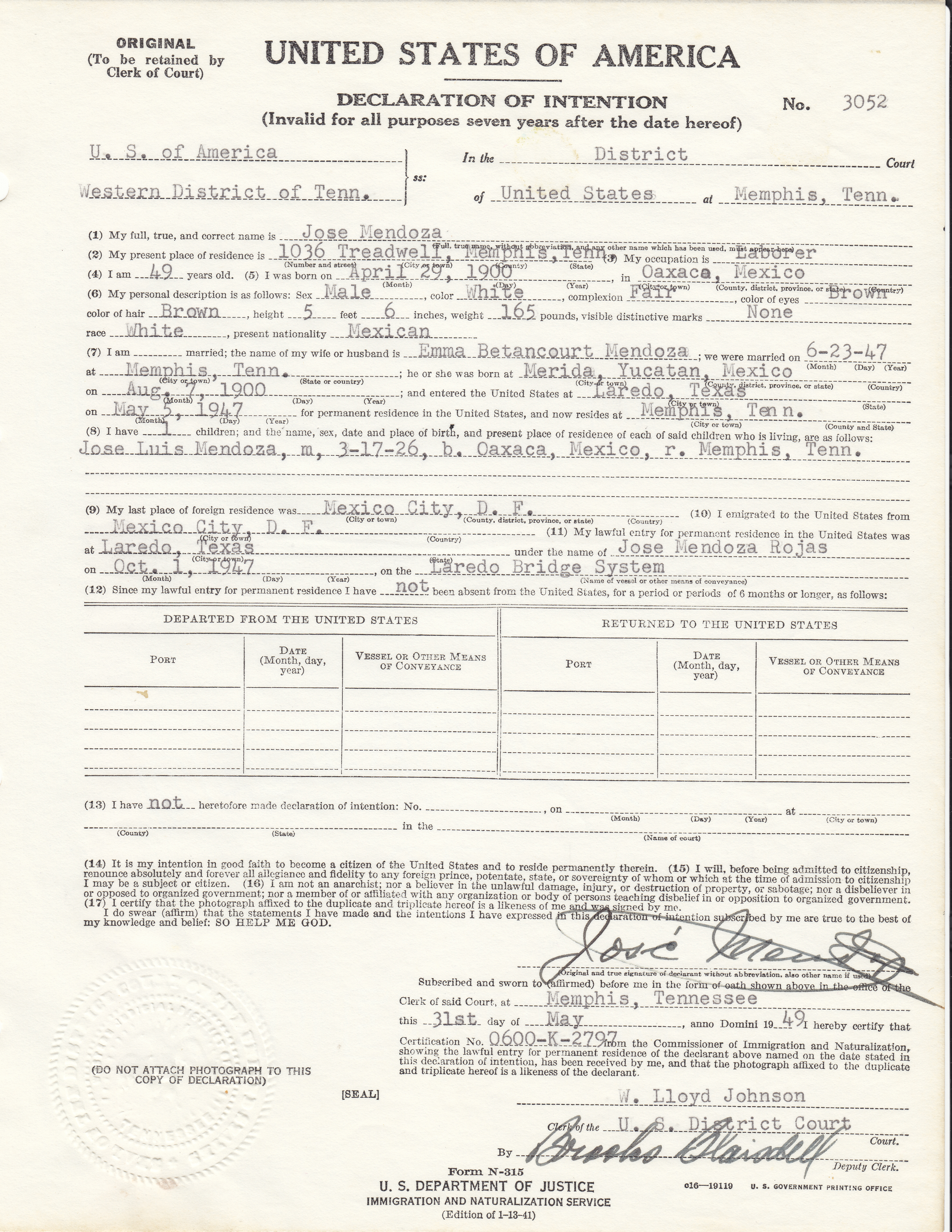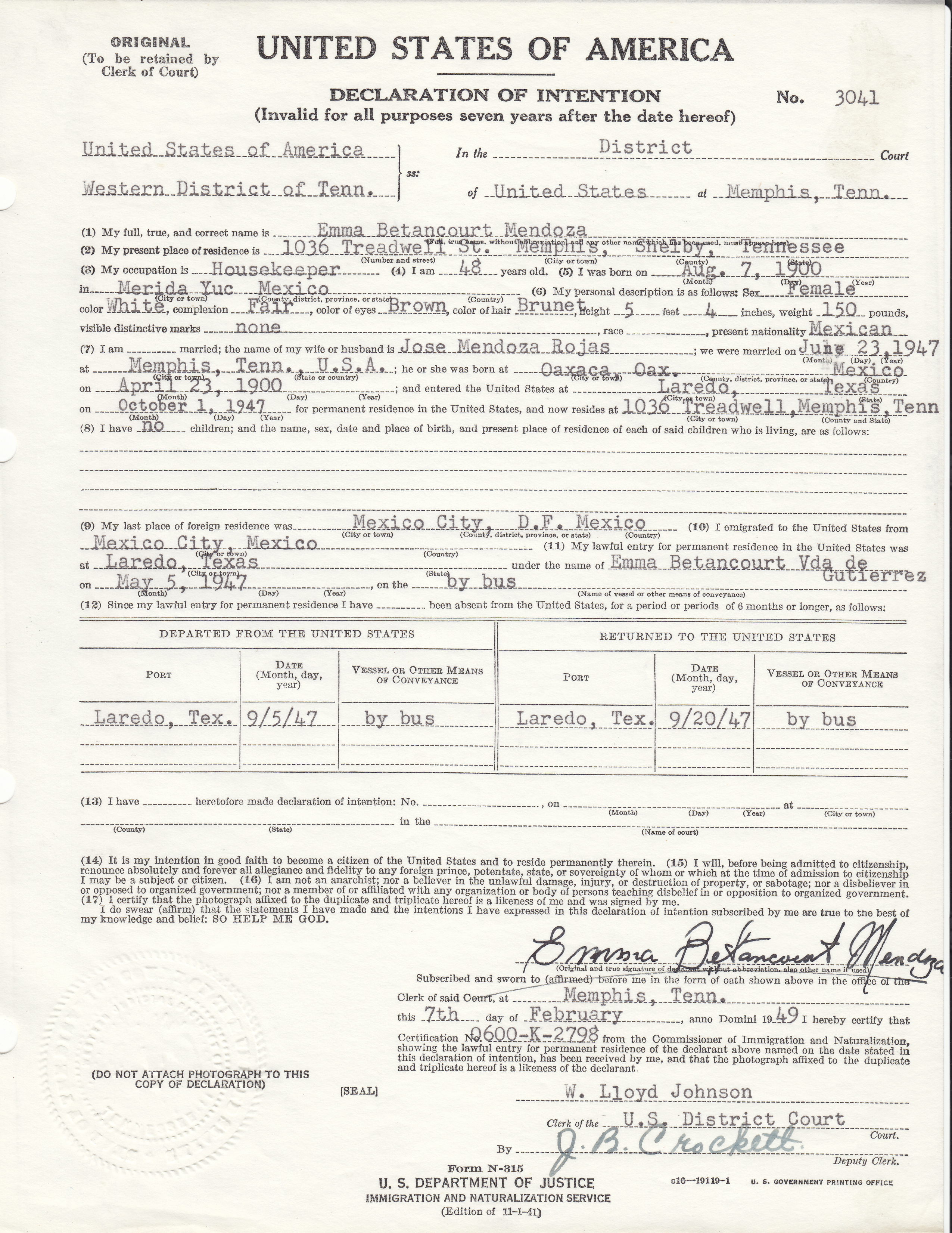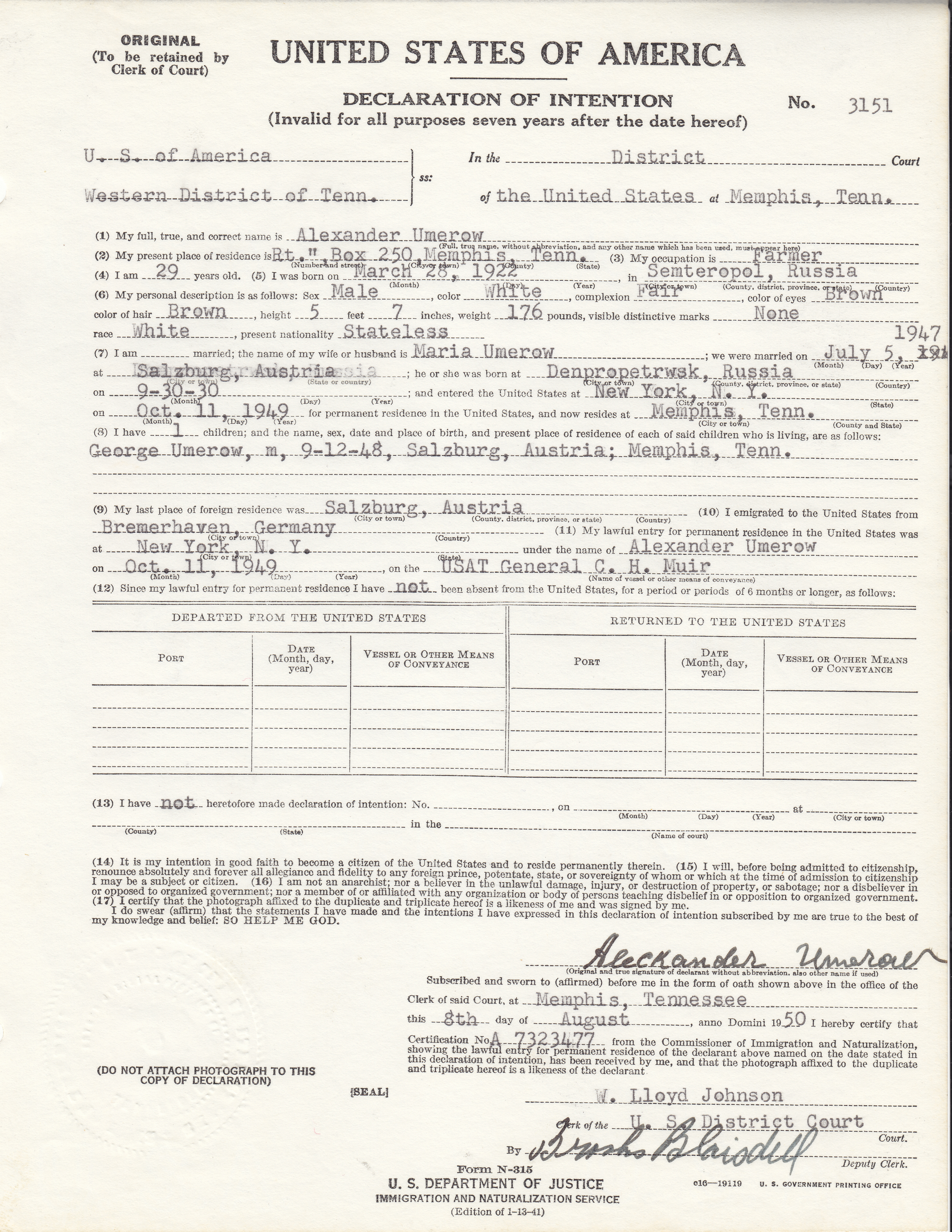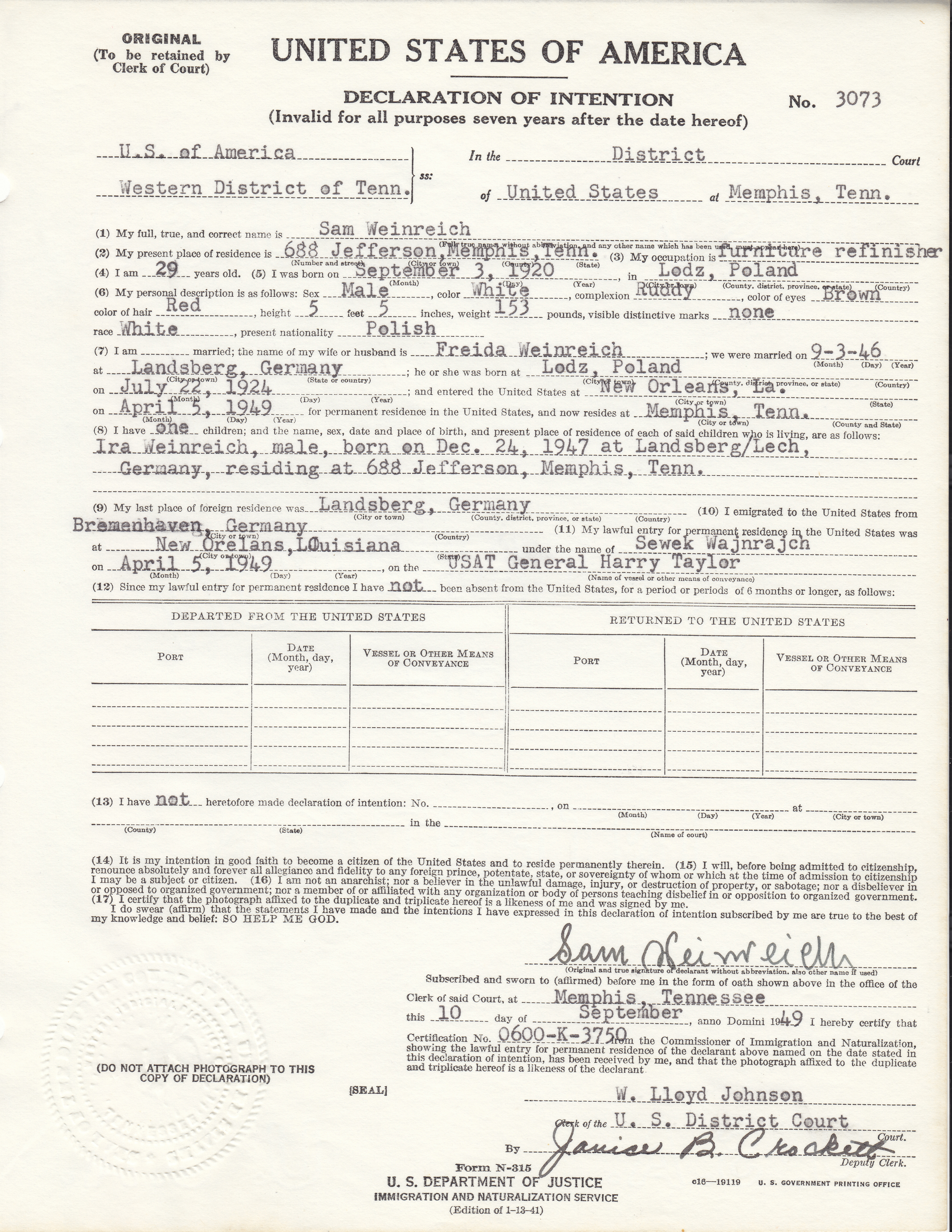 Sample Declaration of Intention