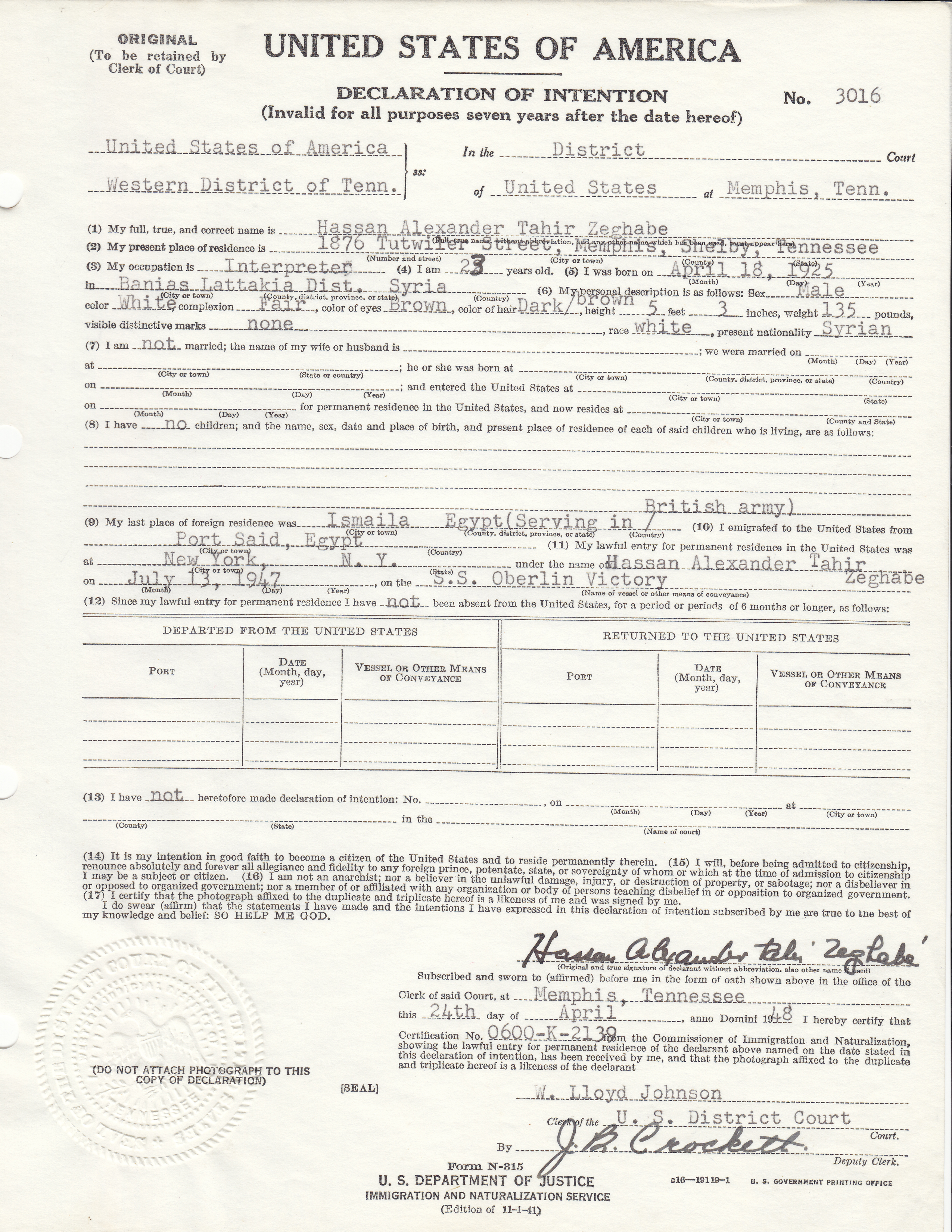 | Zeghabe | Hassan Alexander Tahir | D | 3016 | . | 1 | . | |