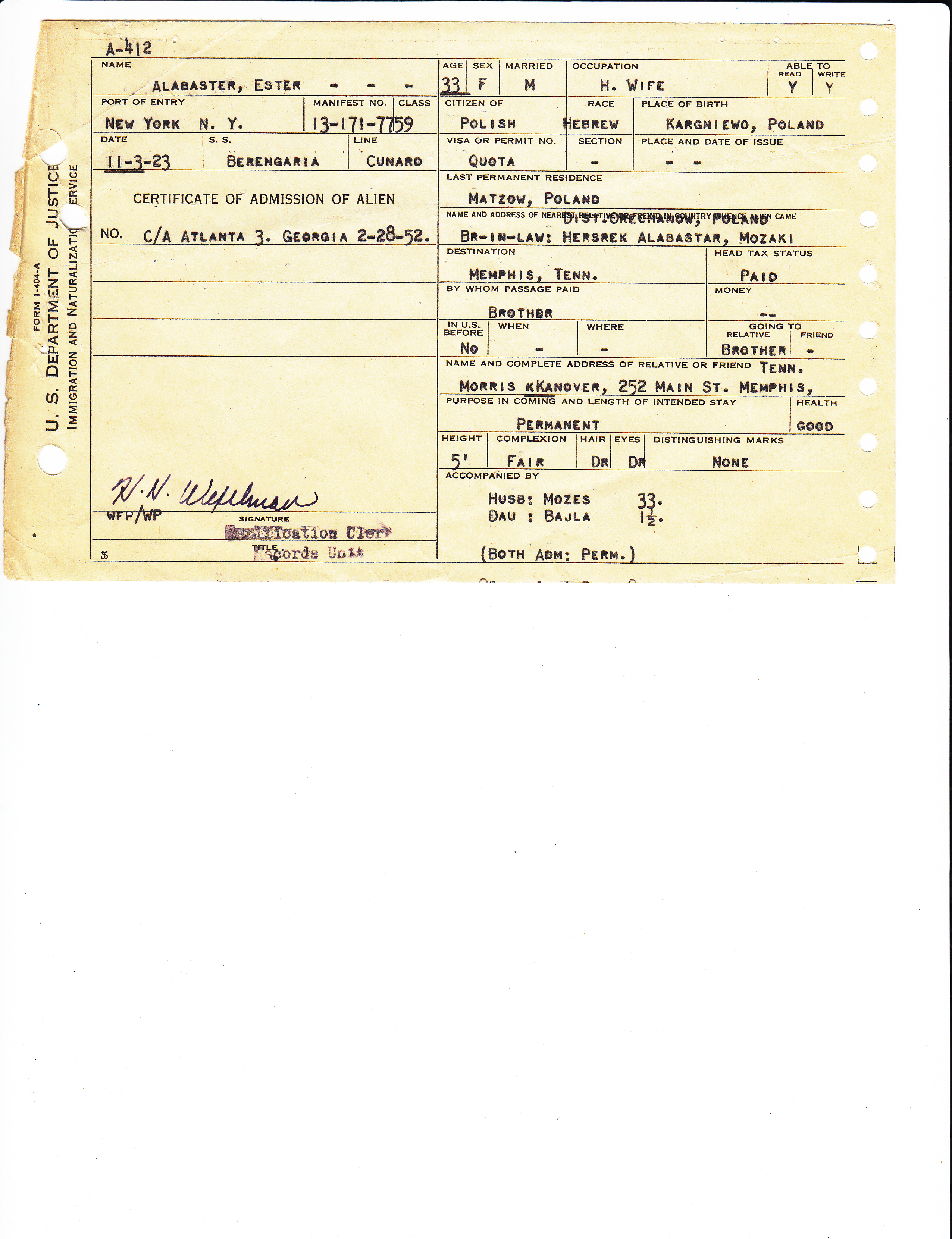 | Alabaster | Moriss Lejb (Mozes) | P12 | 1368 | . | |||