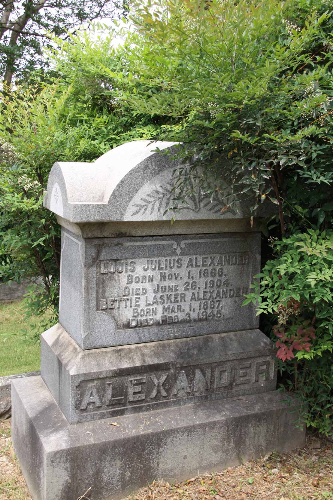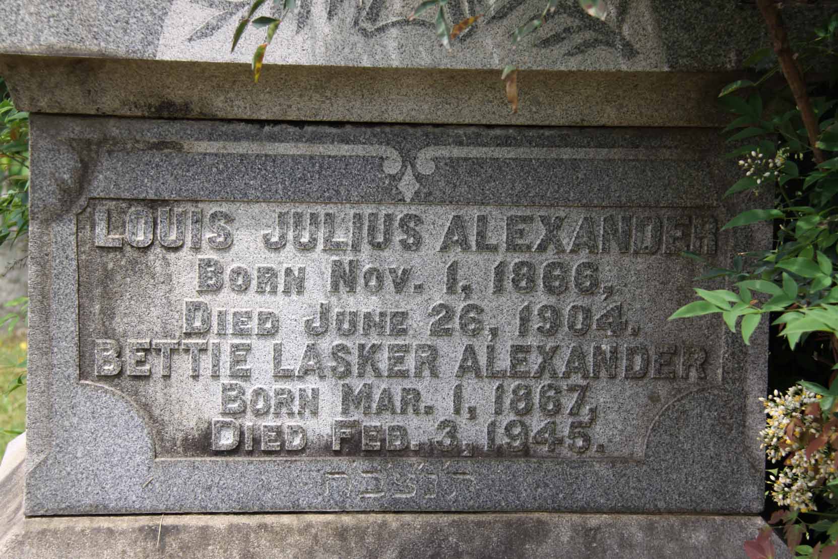 | Alexander | Bettie Lasker | March 1, 1867 | Feb. 3, 1945 | . | . | H | . | |