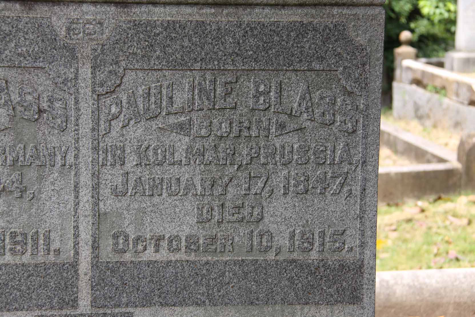 | Wormser | Rosetta | Dec. 26, 1840 | July 2, 1920 | Born in Hochstadt, Bavaria | . | H | . | |