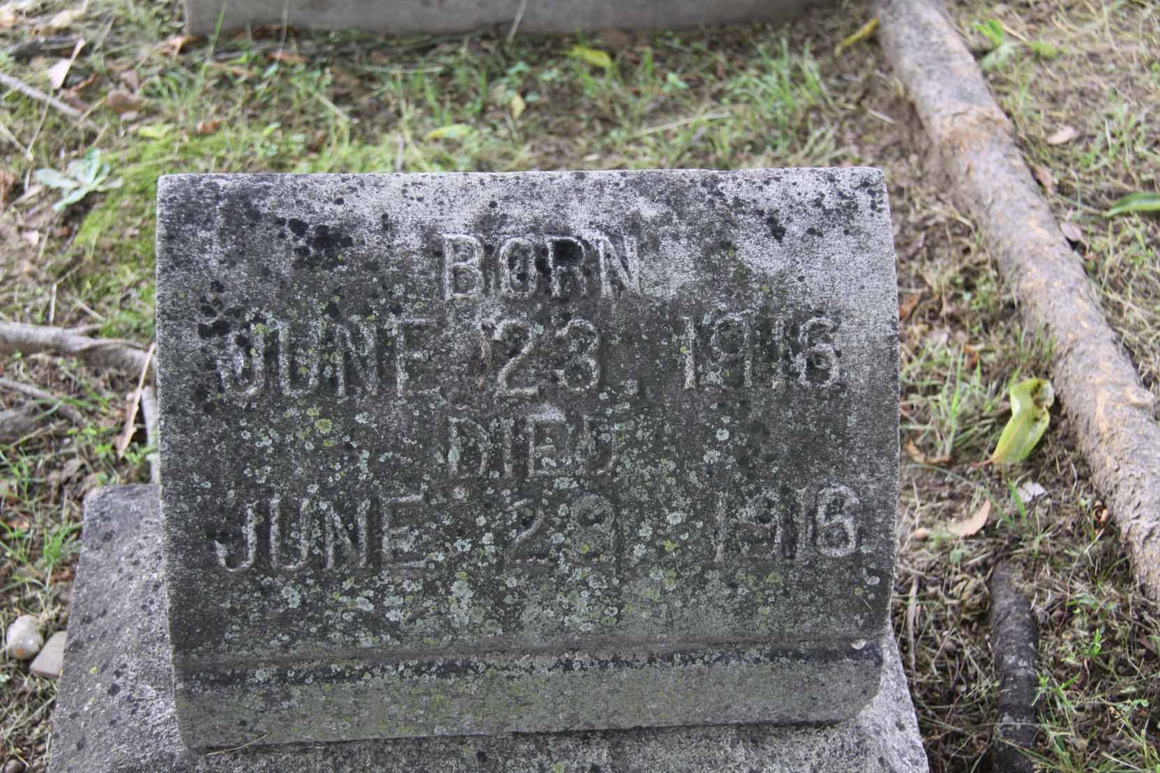 | Wolf | Joseph, Jr. | May 31, 1886 | April 30, 1920 | In loving memory of Joe, Jr. | Son of Joe & Minnie Wolf | . | . | |
