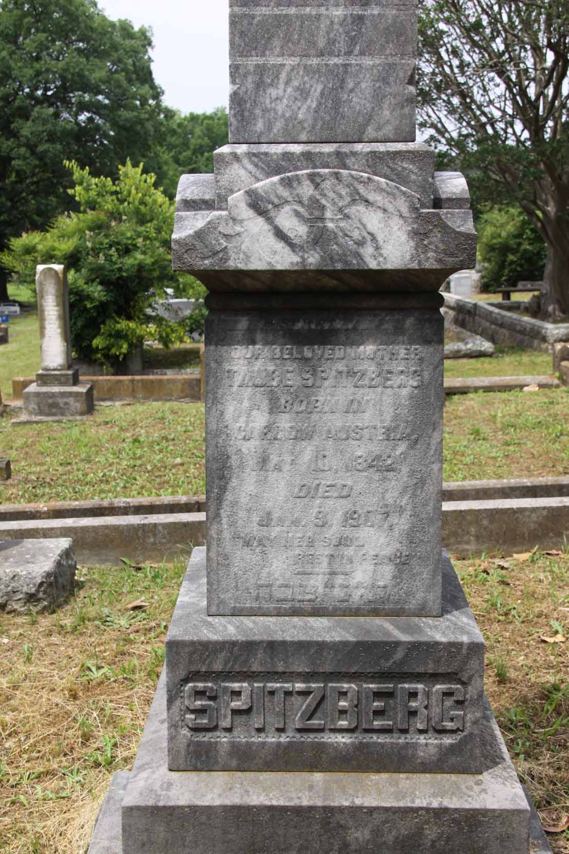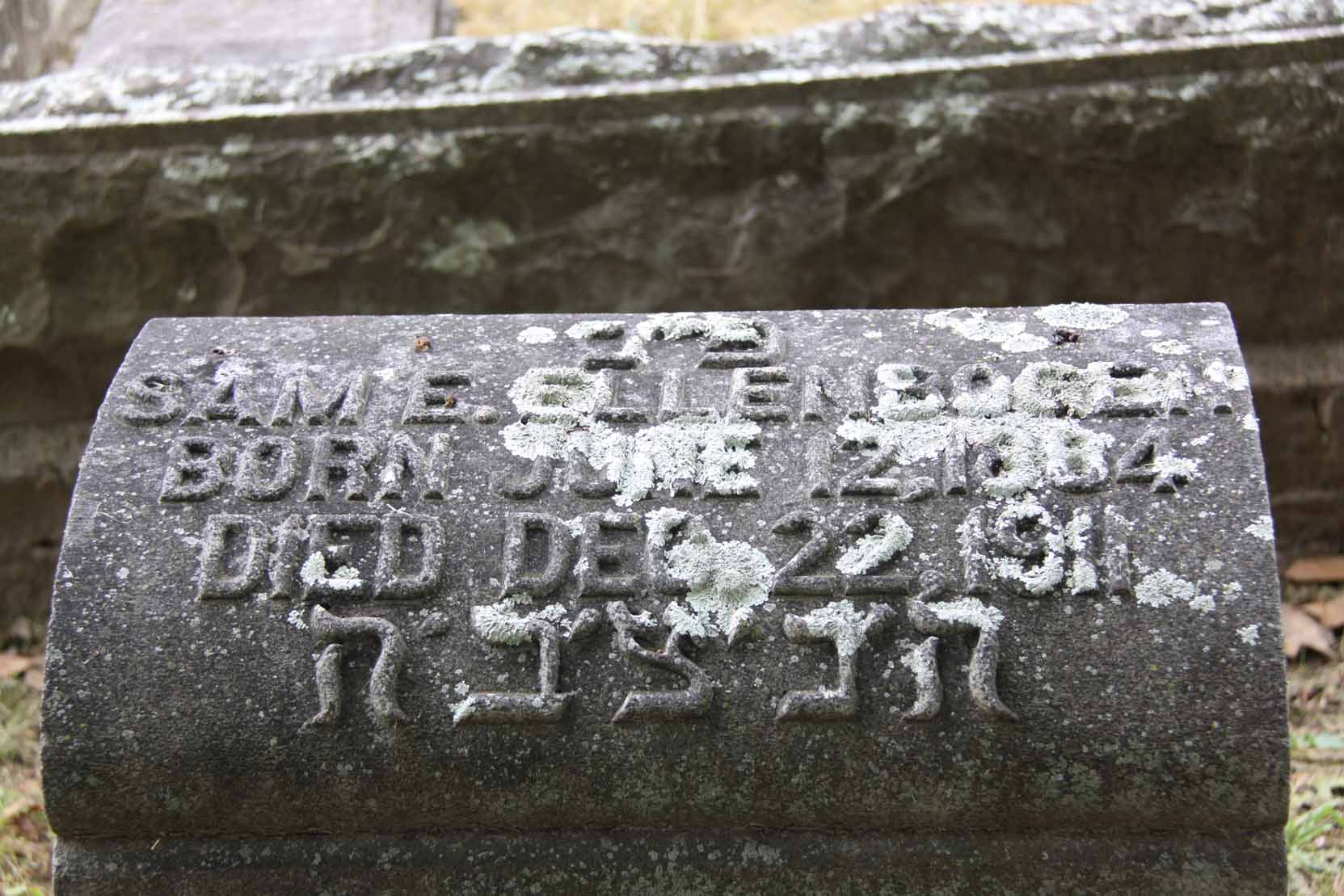 | Alexander | Ernestine | June 6, 1829 | Oct. 25, 1891 | Erected in memory of our beloved Mother | . | Hebrew | . | |