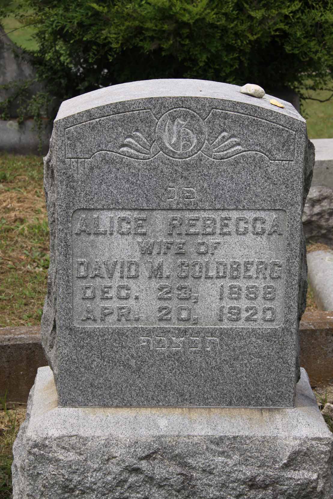 | Abeles | Sara | Nar. 1, 1871 | Feb. 20, 1895 | Beloved w/o Sam M. | . | H | . | |
